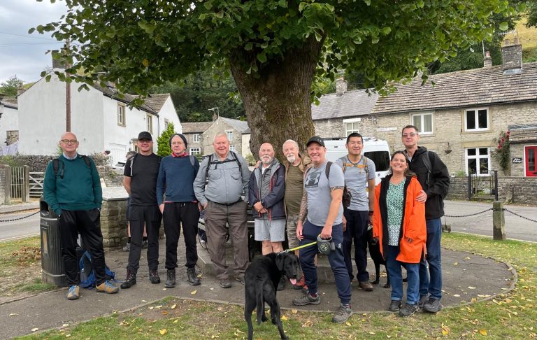 The wet weather didn’t deter the 11 walkers who left the picturesque village of Castleton on today’s walk. We ascended the dramatic gorge