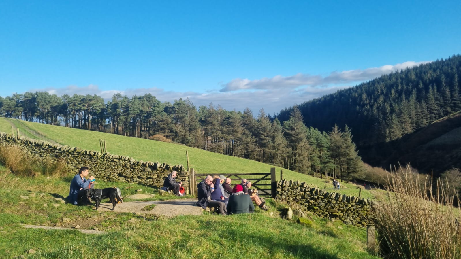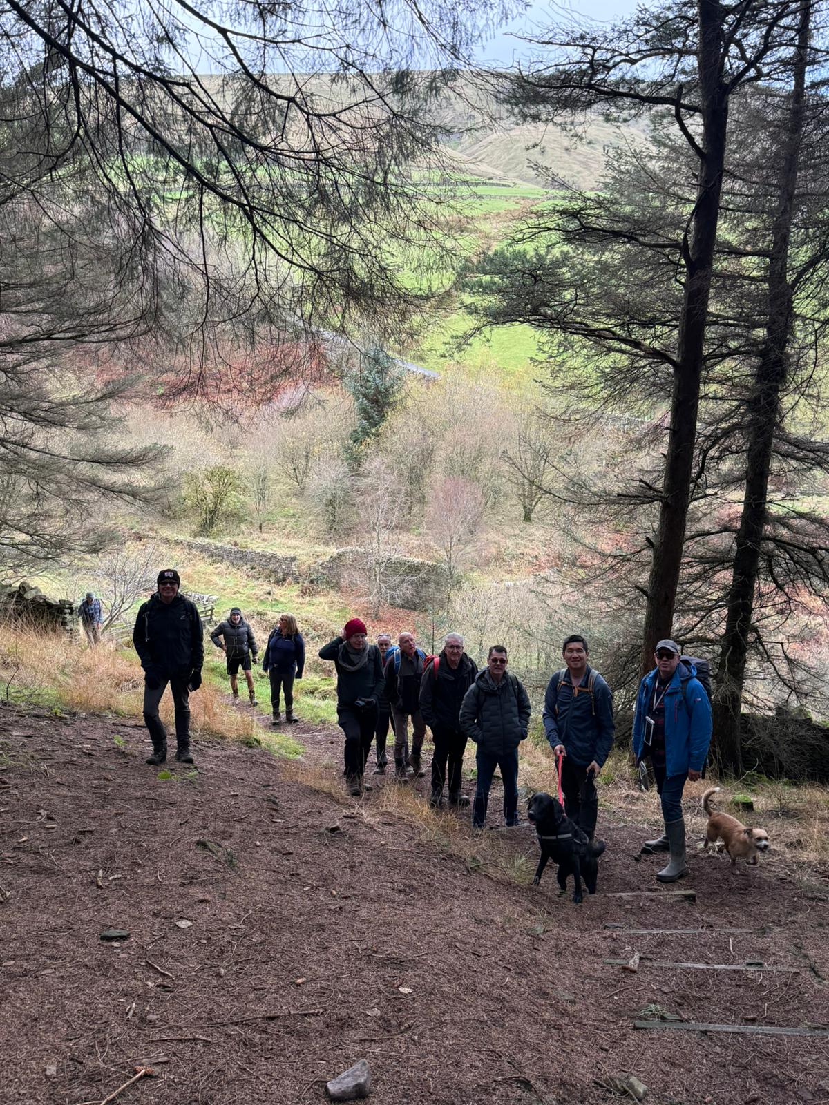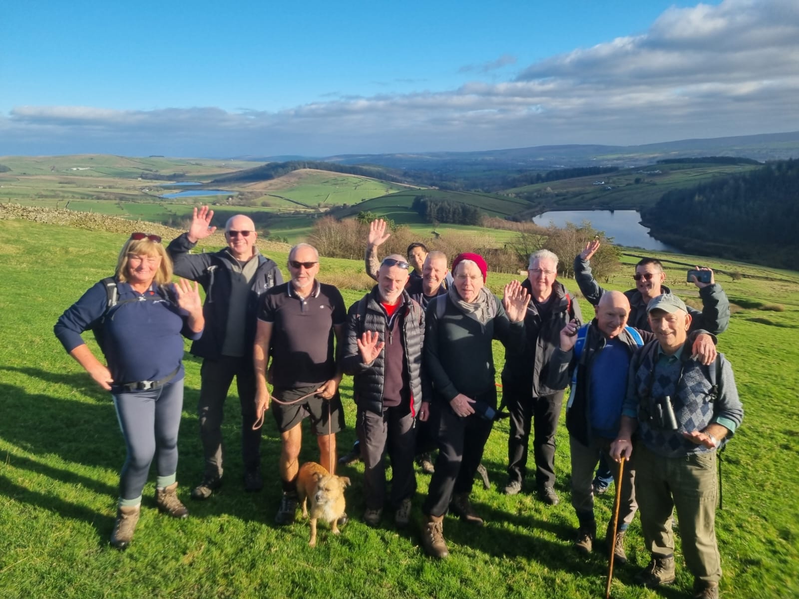 A very muddy and boggy walk underfoot today, after torrential rains in the previous few days from Storm Claudia. Thankfully, sun and blue skies greeted us and although a chilly day, the sun was a welcome break from gloomy skies. Eleven hardy walkers gathered for the walk, led by Dave H, along the flanks of Pendle Hill – a new walk/location for most. There were a few steady inclines and decents as its a hilly place but everyone coped really well and the general concensus was that it was a great walk. We finished with a rest and refreshments, sat outside at The Cabin cafe in Barley car park – hot chocolate and baileys was very welcome.