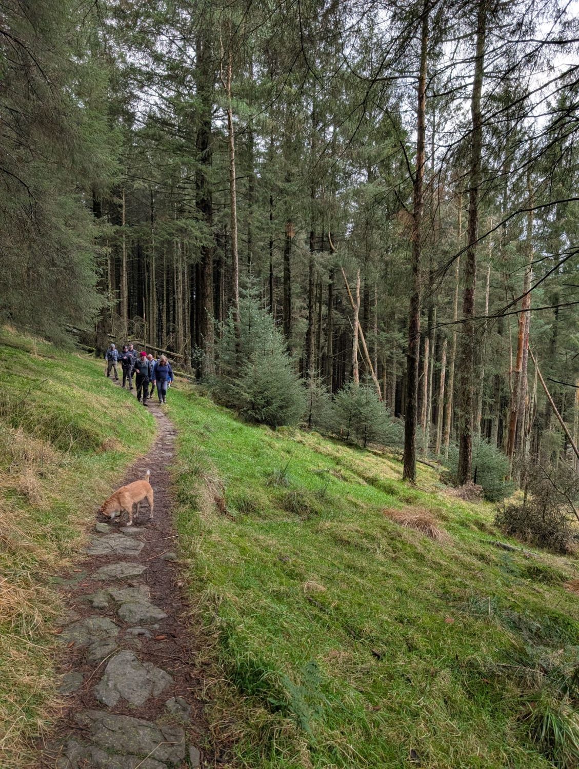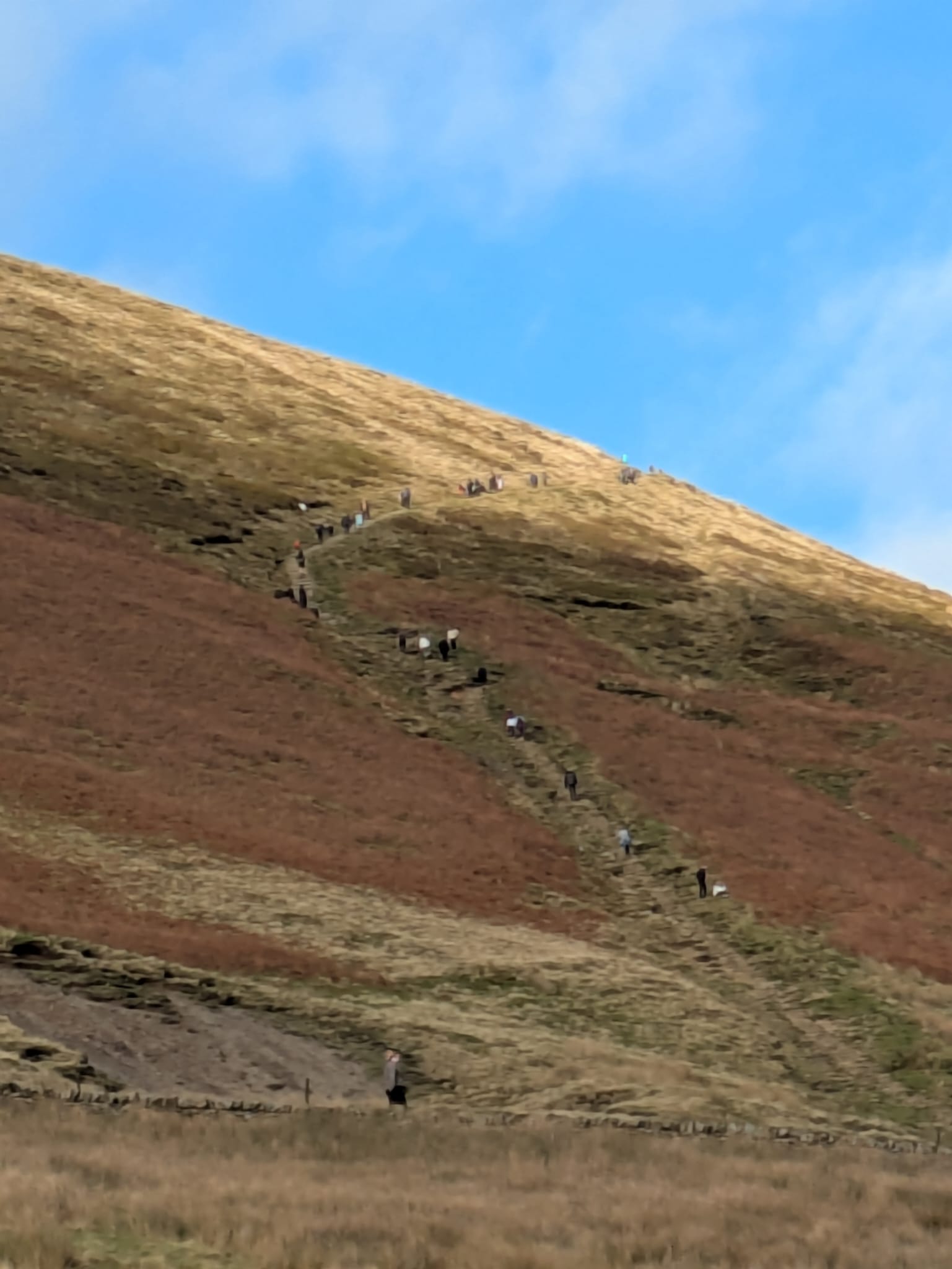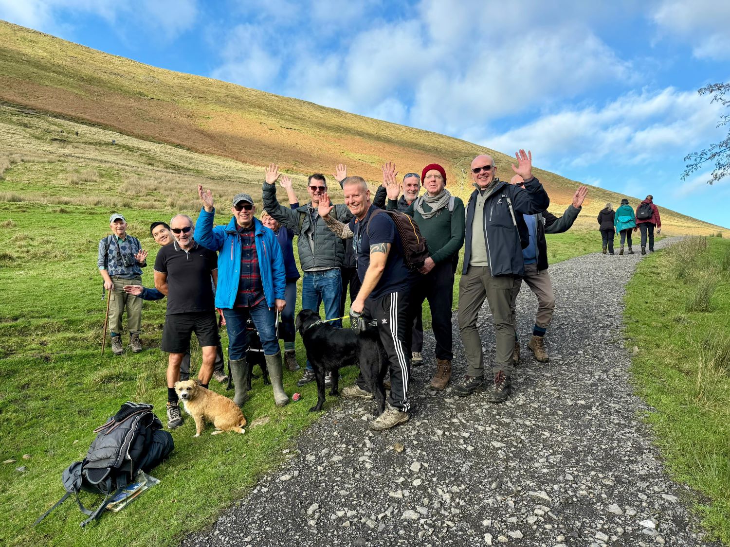 A very muddy and boggy walk underfoot today, after torrential rains in the previous few days from Storm Claudia. Thankfully, sun and blue skies greeted us and although a chilly day, the sun was a welcome break from gloomy skies. Eleven hardy walkers gathered for the walk, led by Dave H, along the flanks of Pendle Hill – a new walk/location for most. There were a few steady inclines and decents as its a hilly place but everyone coped really well and the general concensus was that it was a great walk. We finished with a rest and refreshments, sat outside at The Cabin cafe in Barley car park – hot chocolate and baileys was very welcome.